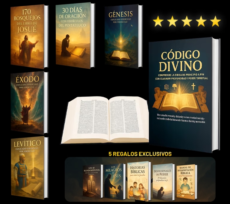 Al adquirir CÓDIGO DIVINO hoy, recibirás totalmente GRATIS estos 5 regalos exclusivos que complementarán tu estudio y crecimiento espiritual: